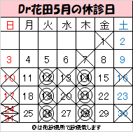 お知らせ TOP新着情報一覧お知らせ5月の歯科医師休診日について 5月の歯科医師休診日について 2026.4.24 院長の休診日 德田の休診日 花田の休診日 丸山の休診日 前へ 4月の歯科医師休診日について その他お知らせはこちら